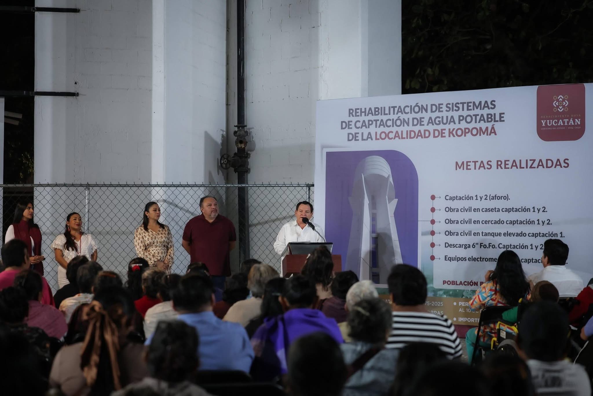Como parte del respaldo del Renacimiento Maya al municipio de Kopomá, se llevaron a cabo trabajos de rehabilitación en los sistemas de captación y distribución de agua potable, los cuales fueron supervisados por el Gobernador Joaquín Díaz Mena, con el objetivo de resolver una problemática que no había sido atendida por más de 20 años.