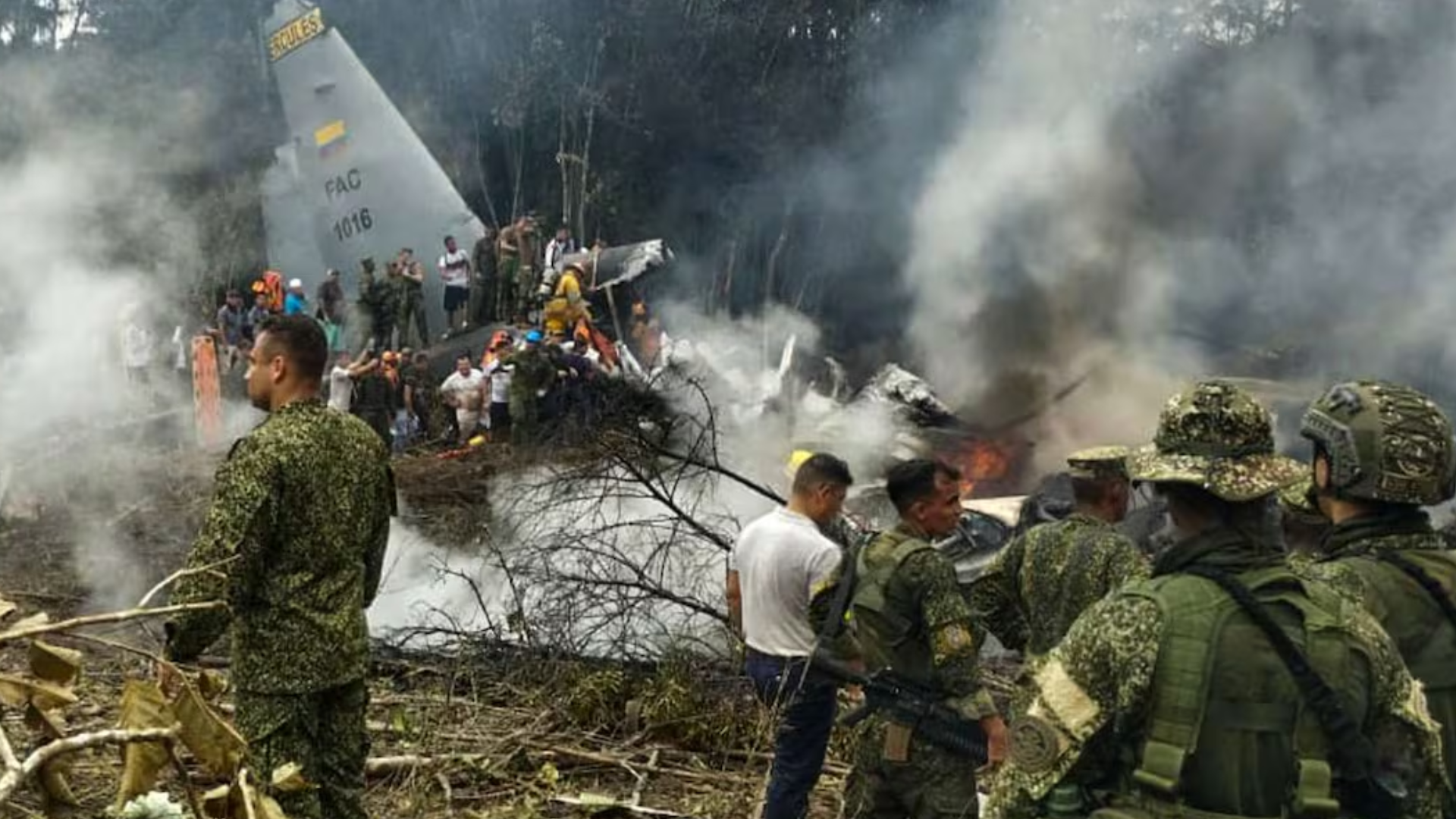 La aeronave, matrícula FAC 1016, transportaba a 128 personas, entre ellas elementos del Ejército, tripulación de la Fuerza Aeroespacial y dos integrantes de la Policía. El avión se precipitó a tierra y se incendió poco después de despegar del aeropuerto local, en una zona selvática de difícil acceso.